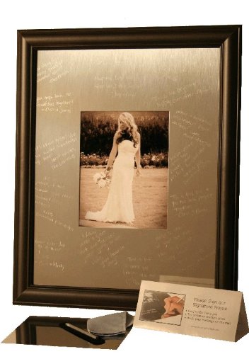 Engravable Signature Frame by EngraveFrames. 16x20 Mahogany color frame matted for 8x10 photo. Includes glass, frame, signature mat, scribe, practice piece, polishing cloth, hanging hardware and box. Mahogany color frame with silver aluminum mat. Brand new, everything included, manufacturer direct. Made in USA - 100% Satisfaction Guaranteed! - DOES NOT INCLUDE CUSTOM ENGRAVING